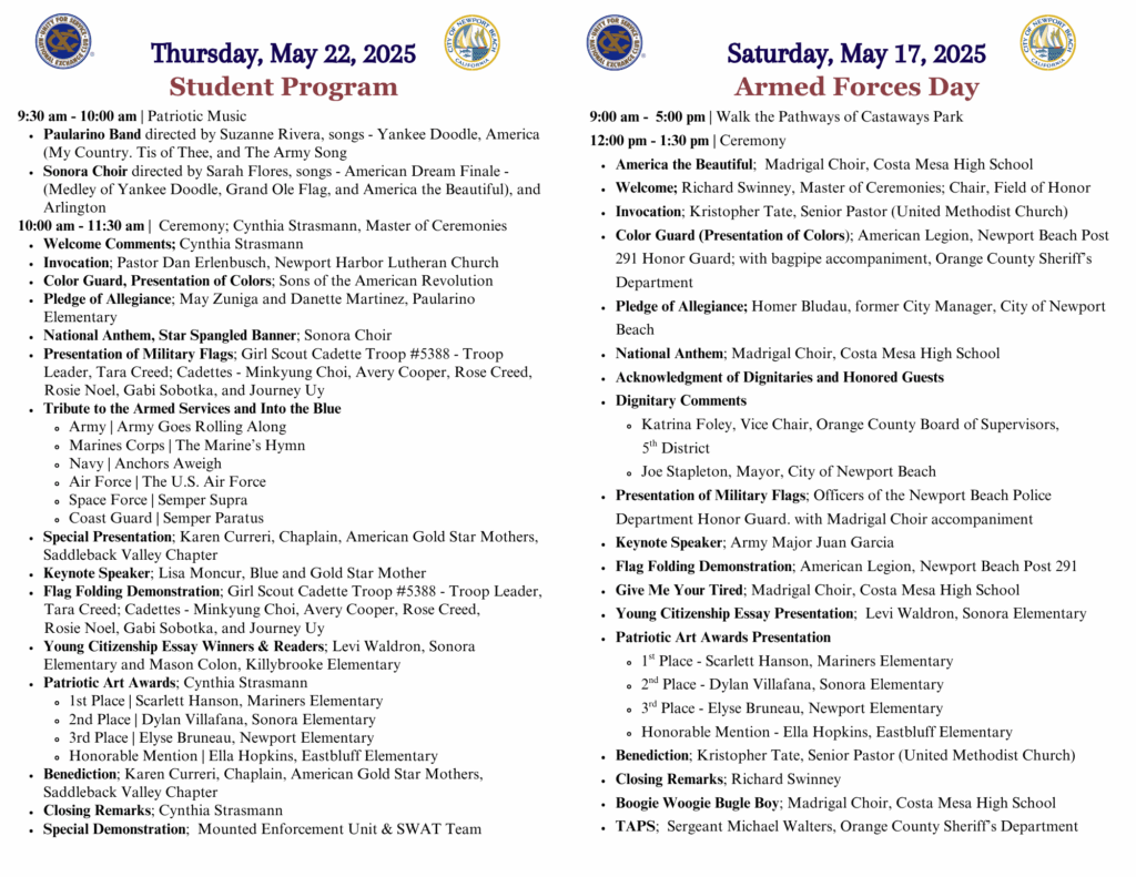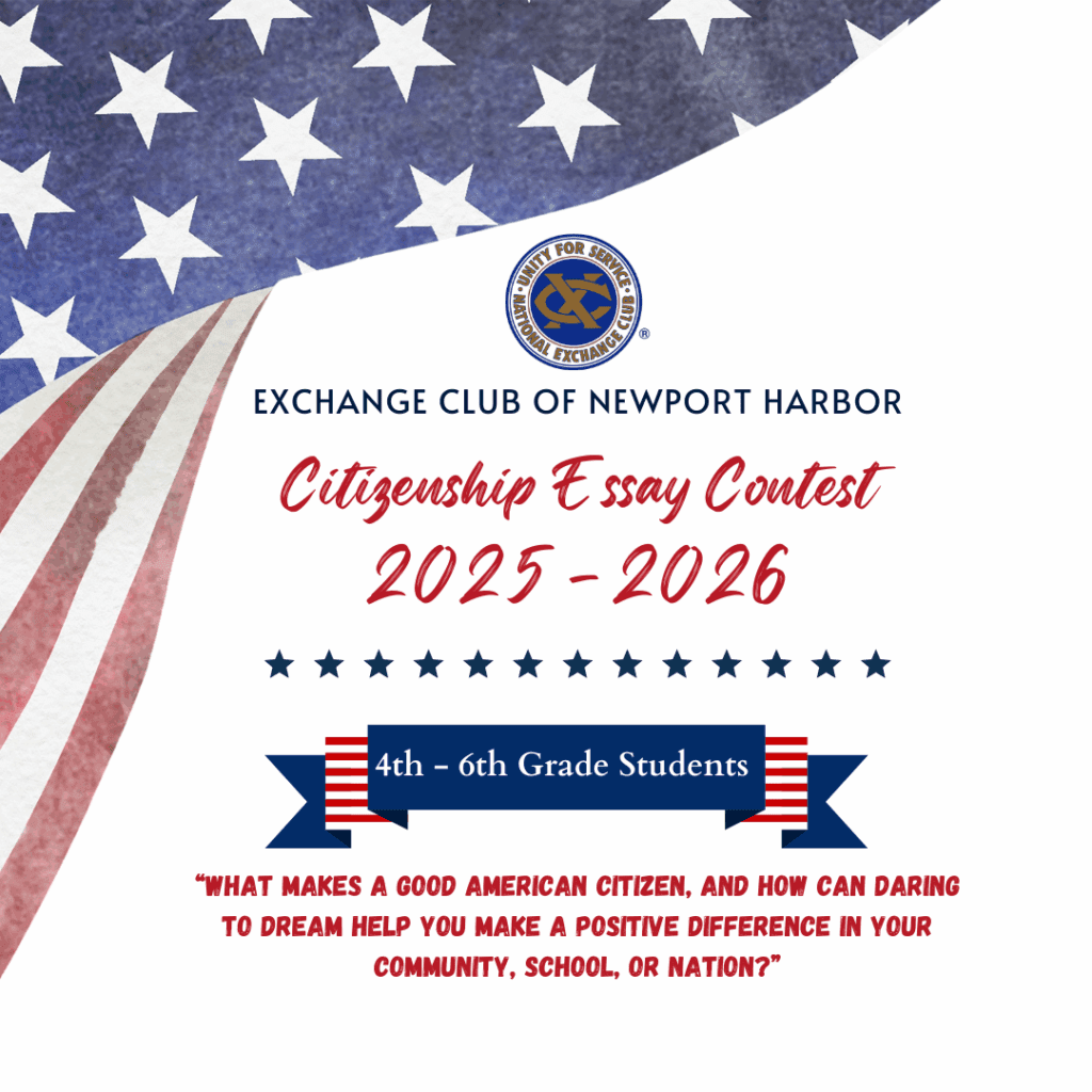 The Exchange Club of Newport Harbor proudly sponsors a series of Americanism programs that promote patriotism, civic engagement, and appreciation for the values that unite us as a nation. Through writing, art, and immersive educational experiences, we help young people reflect on what it means to be an American and how they can positively contribute to their community and country.