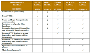 Here are your Sponsorship Levels