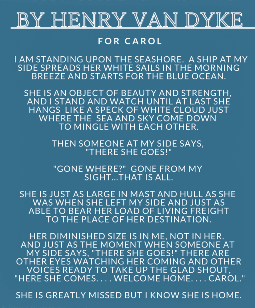 President Mike Gertner opened and introduced Leo Fracalosy. Leo tried to explain his indescribable sadness from the recent loss of his be-loved wife, Carol. He read a parable in her honor, shown here. Richard Swinney gave a moving tribute to Carol and Bob Washer, who also recently passed. Shirley Lashmett led the Pledge.