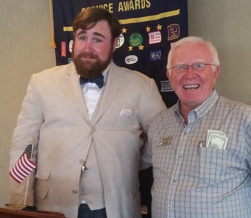 President Ken DuFour called the meeting to order after people begged him to ring the bell he did quite forcefully and in his prayer asking God for grace forgiveness help and guidance Bill Bechtel led us in the flag salute which we did after a short story about flags from Billy.