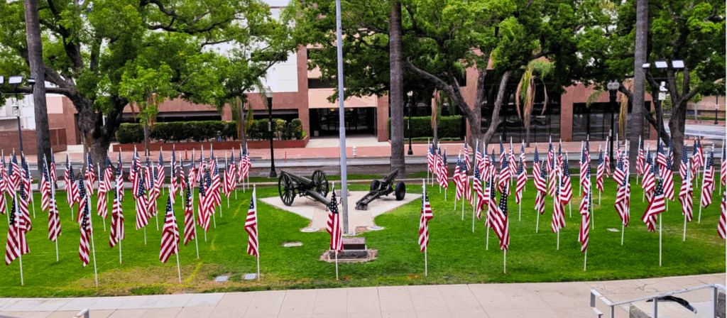 Ken reported a signup sheet for the installation dinner on Saturday, 23 July, 5PM at the BCYC. Richard also reported on the Recent Field of Honor was a big success this year, in multiple ways, due to the dedication of just a few members. And more members helping would make this easier for few that are there EVERY SINGLE DAY.Ken DuFour reported that we placed 247 flags around the Santa Ana old Courthouse for Flag day, and that it was a beautiful success appearance-wise and also financially, yielding a $3,000 profit for the Field of Honor, which will gross about $54K. See photo next column.