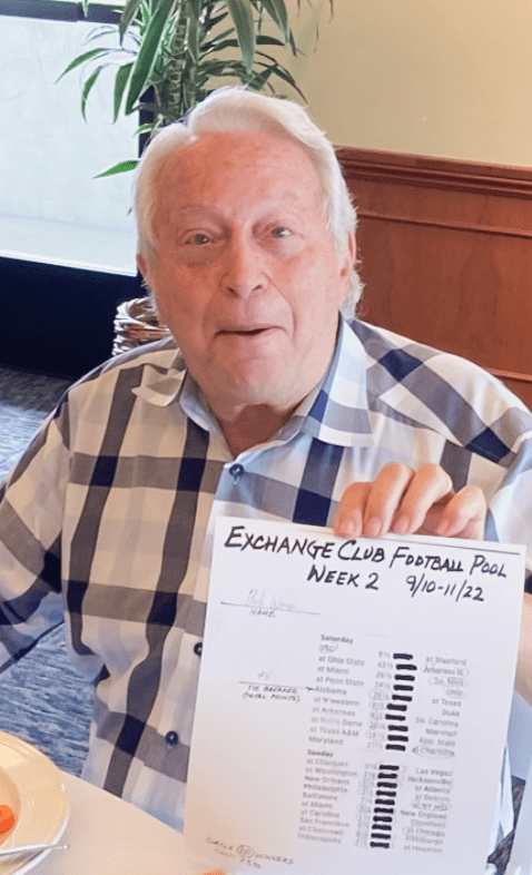 Mike Gertner announced football pool results. Shirley Lashmett, Garry Tewinkle, and Jeff Yeargain competed for low man. Garry was furthest from the tie breaker number and prevailed. Joe Brown and Ed Romeo finished first and second, respectively. Notably, Joe picked 18 of 20 winners, probably the highest number of
