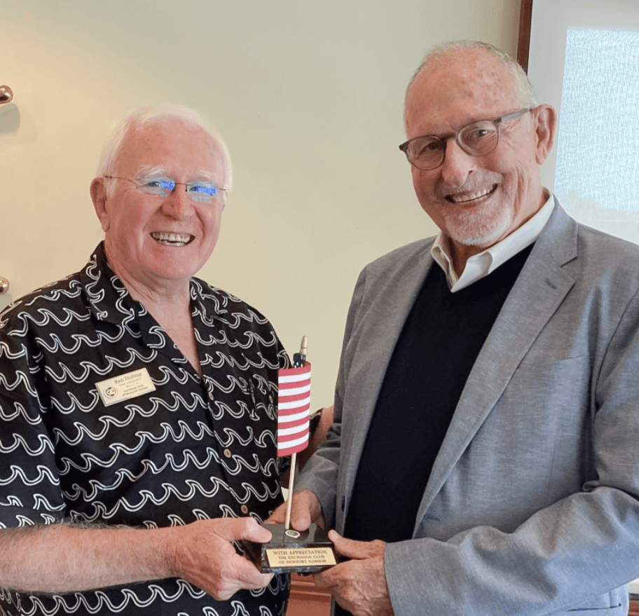 Diane Daruty introduced Tom Johnson, owner and publisher of Stu News Newport. Tom has a lengthy list of career accomplishments (including publisher of Daily Pilot from 1991-2008), tremendous community involvement (multiple chairman and board positions), and many awards (such as citizen of the year for Newport and Costa Mesa and OC Press Club’s lifetime achievement award). Tom was bashful about the lengthy introduction, noting Seymour Beek’s list of achievements is twice as long.