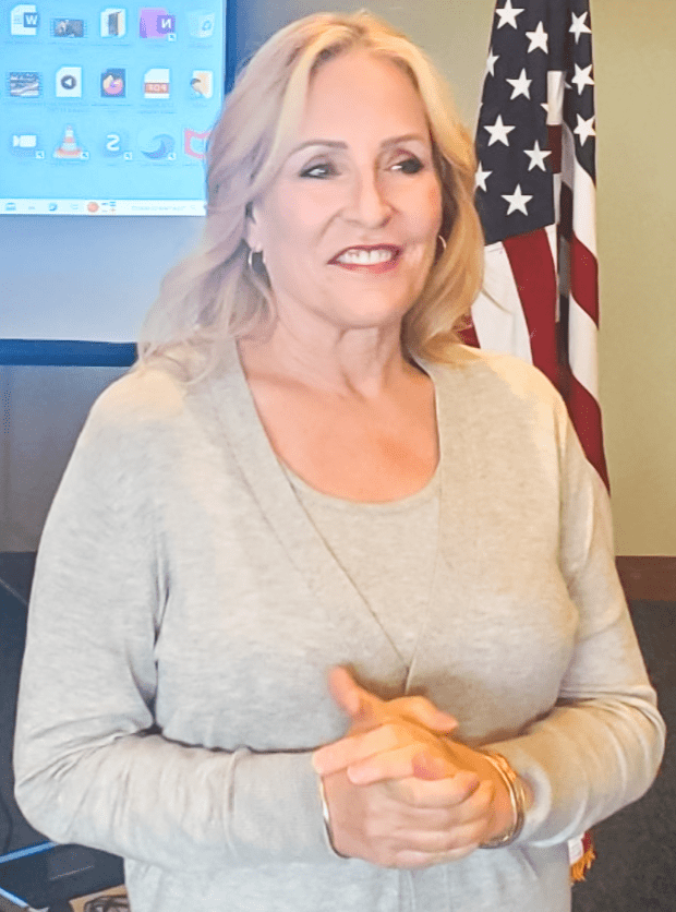 LIVE MEETING Shirley Lashmett opened for her first time as President. She thanked God for His love, care, and guidance.